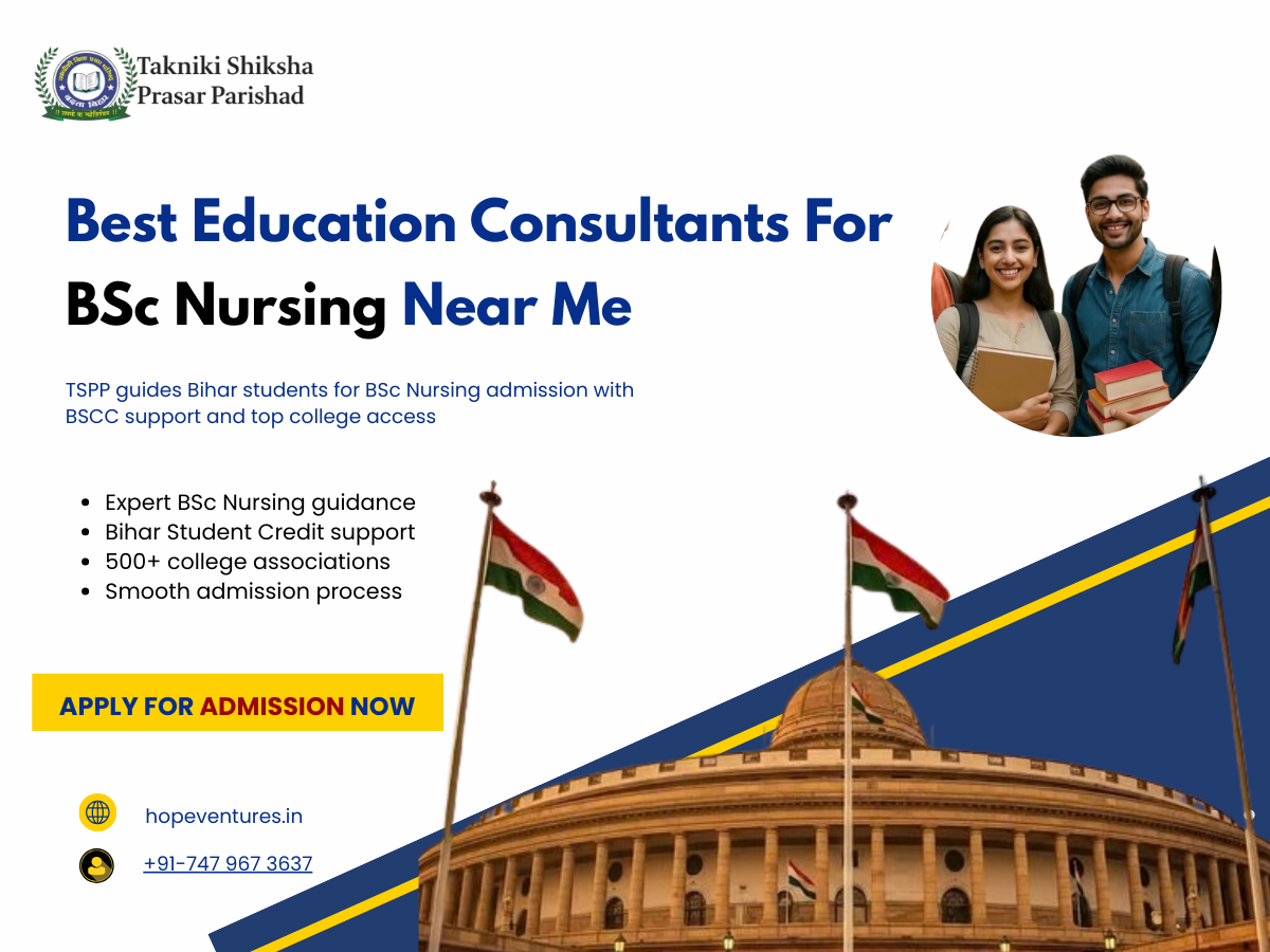 Choosing the right guidance is crucial for a successful BSc Nursing career, and working with the Best Education Consultants For BSc Nursing Near Me like TSPP ensures a smooth, transparent, and reliable admission journey. With 15+ years of experience, a dedicated 25+ member team, and associations with 500+ colleges, TSPP provides comprehensive support from career counseling and college shortlisting to document verification and seat confirmation. For Bihar students, we go a step further by offering Bihar Student Credit Card support, making professional courses financially accessible. Our mission is to empower Bihar students to achieve their career goals in healthcare, whether in India or abroad, by providing expert guidance, practical advice, and complete admission assistance. Choosing TSPP means not just admission, but a well-planned long-term career path in nursing and healthcare.
