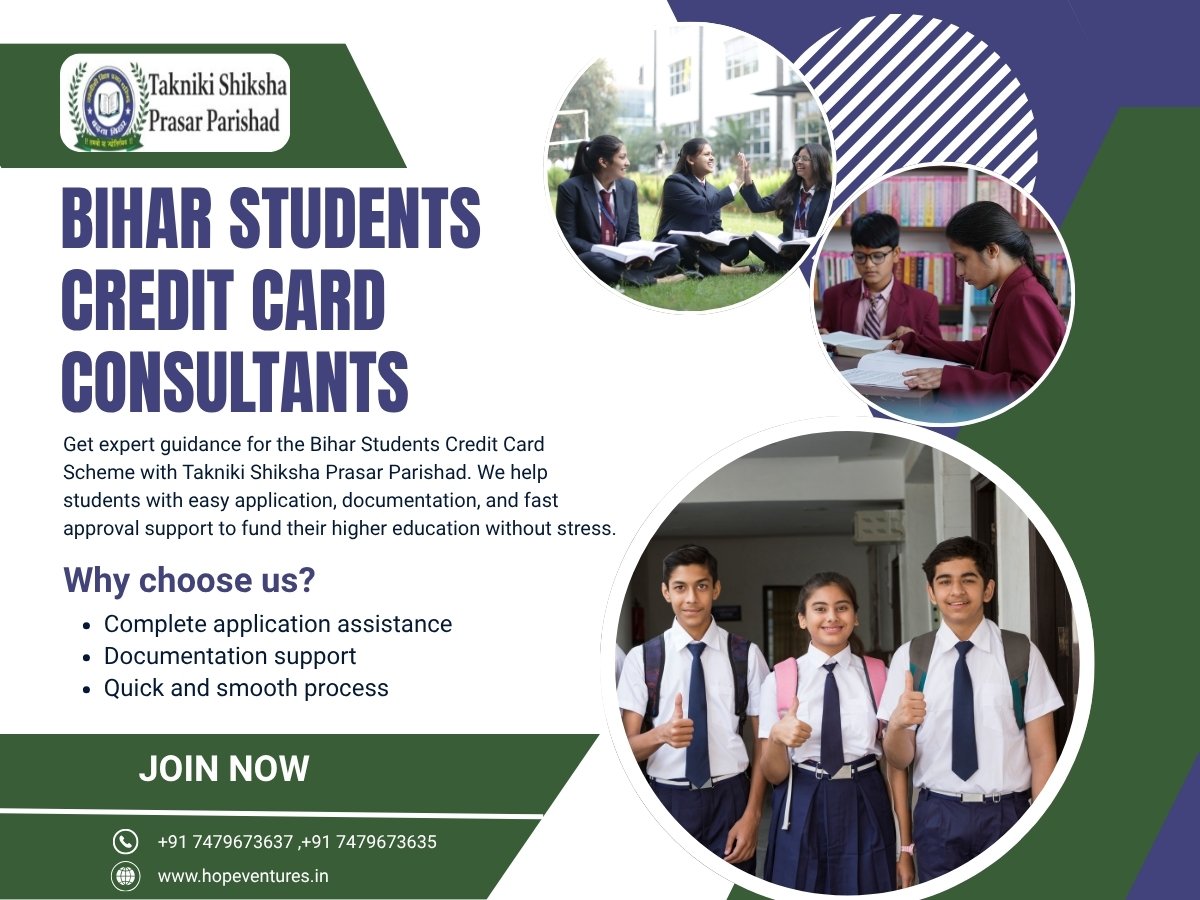 Takniki Shiksha Prasar Parishad works closely with experienced Bihar Students Credit Card Consultants to provide professional support for students. This partnership ensures smooth loan processing, proper verification, and assistance with repayment planning. The combined expertise of the parishad and consultants gives students confidence and peace of mind throughout the BSCC application process.