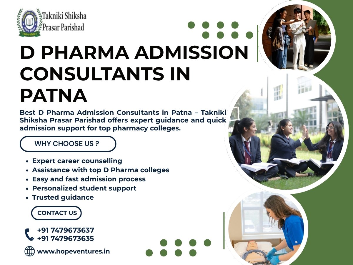 Trusted admission experts and organizations like Takniki Shiksha Prasar Parishad focus on guiding students toward quality pharmaceutical education and long-term career growth. By seeking support from professional pharmacy admission consultants in Patna and reliable D Pharma admission guidance in Patna, students gain clarity about course opportunities, career prospects, and future pathways in the healthcare sector.