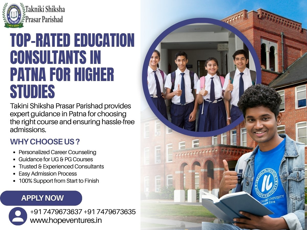 Education Consultants in Patna help students choose the right courses, colleges, and career paths based on their academic background and interests. They provide guidance for admissions, documentation, counseling sessions, and application procedures for higher studies. Many consultants also work with organizations like Takniki Shiksha Prasar Parishad (TSPP) to promote technical and professional education awareness.